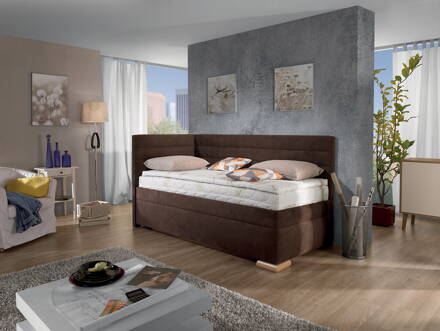 - vzdušné pružinové jadro, textil, pena a duté vlákno sú pevne pričalúnené k lamelovému masívnému rámu - masívny drevený rám s lamelami umožňuje prístup k úložnému priestoru z boku alebo možnosť otvárania od nôh.